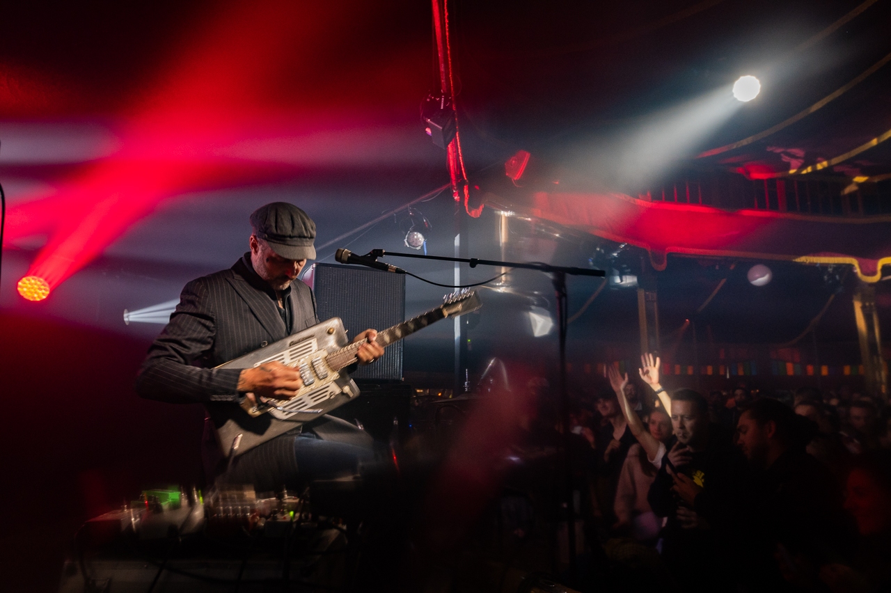 King Automatic est un artiste multi-instrumentiste et l’un des maîtres du one-man band. Originaire de Lorraine, il mélange habilement garage rock, rockabilly, blues, et influences exotiques pour créer un son unique et énergique. Utilisant une batterie qu’il joue avec les pieds, une guitare, un clavier, et divers instruments, il orchestre ses morceaux en live de façon impressionnante. Son style éclectique et son approche DIY lui ont valu une reconnaissance internationale. Lors du Nancy Jazz Pulsations 2023, King Automatic a captivé le public avec son dynamisme et son univers sonore unique, renforçant son statut de figure incontournable de la scène indépendante.
