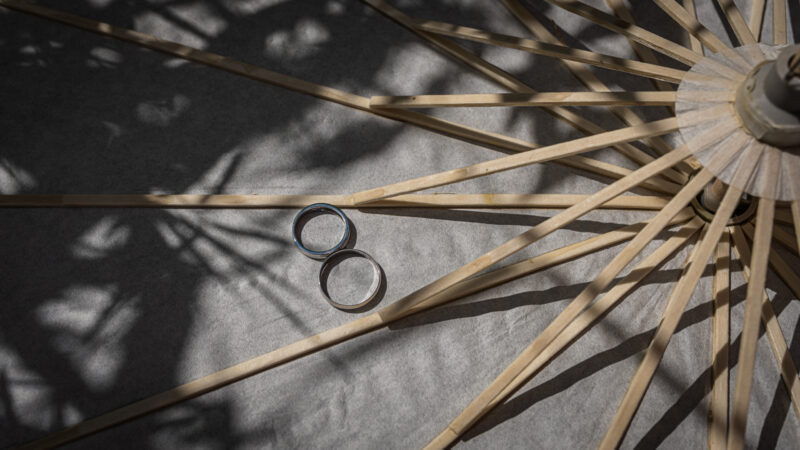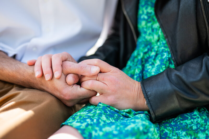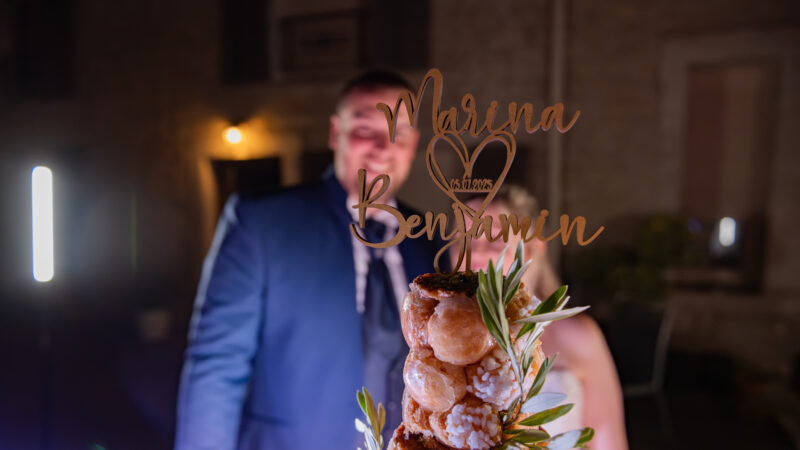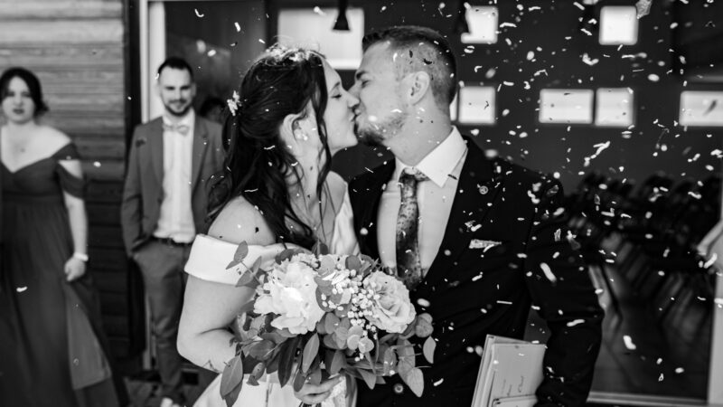 • Couple souriant photographié devant une salle.